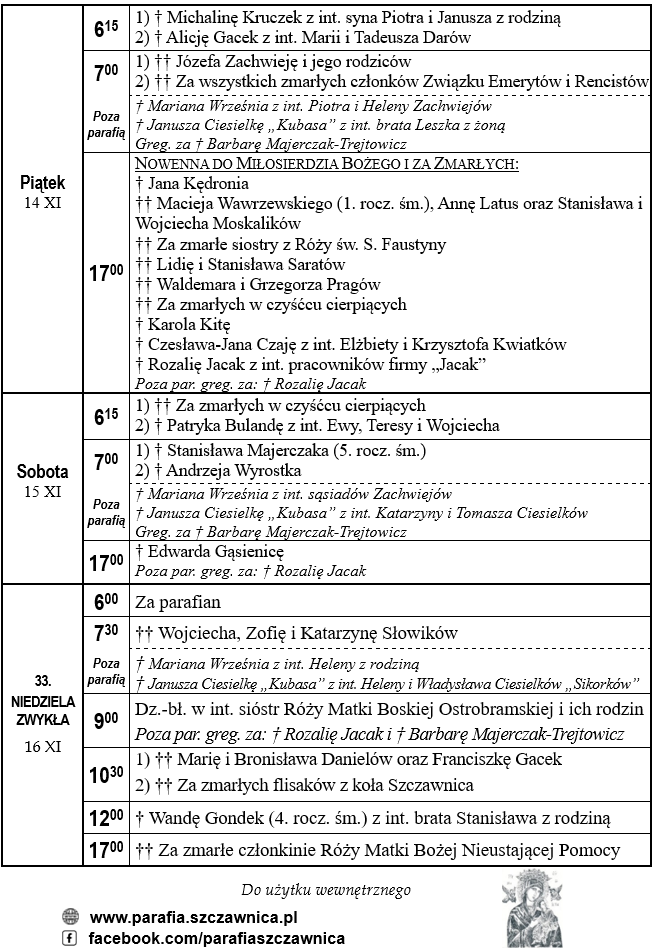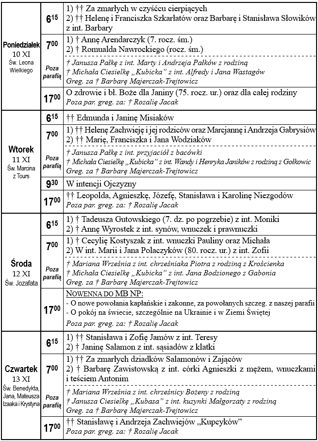 Intencje mszalne od 10.11.2025 do 16.11.2025 r.
