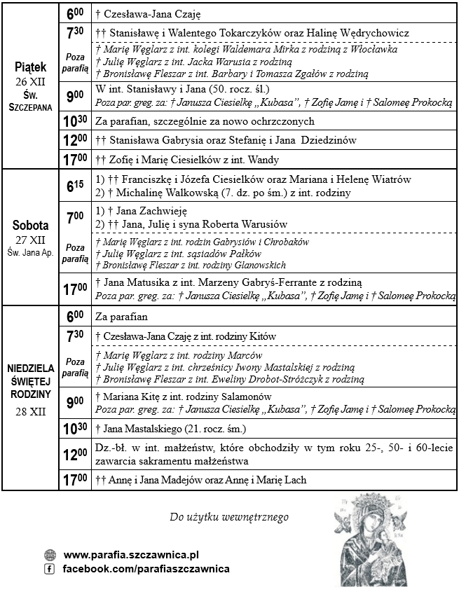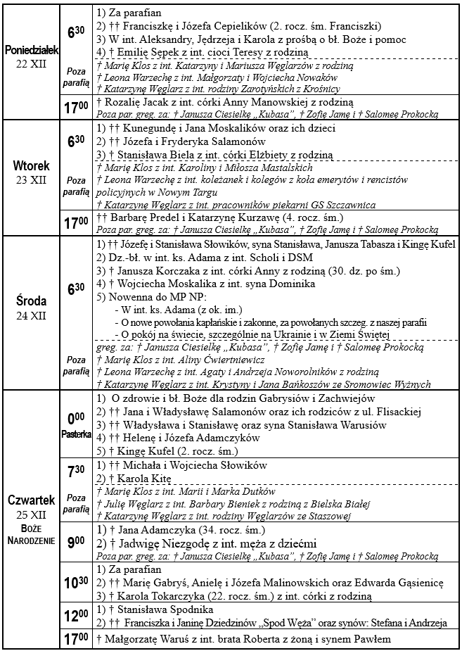 Intencje mszalne od 22.12.2025 do 28.12.2025 r.
